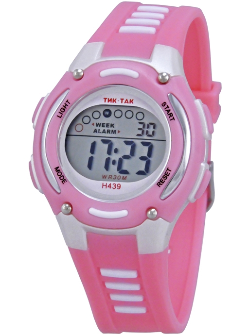 |  нажмите для увеличения | Электронные часы ТИК-ТАК Н439 Розовые | Материал корпуса | Пластик | | Размеры корпуса | | | длина | 35 мм. | | ширина | 33 мм. | | толщина | 13 мм. | | Материал ремешка/браслета | PU | | Длина часов с ремешком | 225 мм. | | Механизм | Электронный с LCD дисплеем | | Особенности | 12/24 формат времени, дата, будильник, секундомер, подсветка | | Комплектация | Прозрачный пакет, паспорт, инструкция по эксплуатации и гарантийный талон |