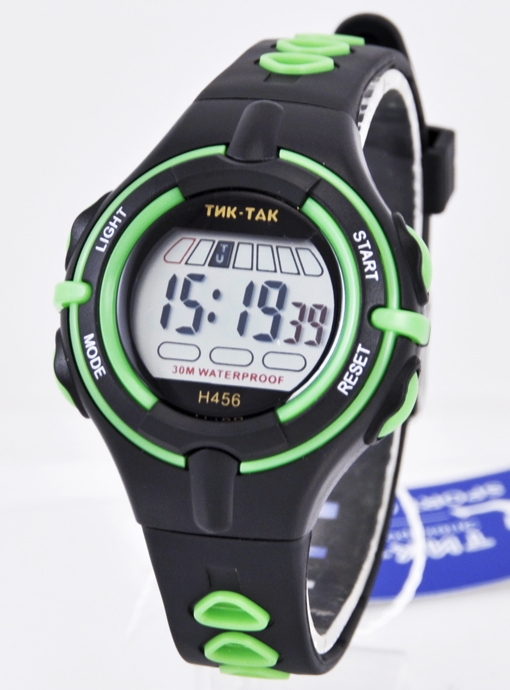 |  нажмите для увеличения | Электронные часы ТИК-ТАК Н456 зеленые | Материал корпуса | Пластик | | Размеры корпуса | | | длина | 40 мм. | | ширина | 34 мм. | | толщина | 12 мм. | | Материал ремешка/браслета | PU | | Длина часов с ремешком | 225 мм. | | Механизм | Электронный с LCD дисплеем | | Особенности | 12/24 формат времени, дата, будильник, секундомер, подсветка | | Комплектация | Прозрачный пакет, паспорт, инструкция по эксплуатации и гарантийный талон |