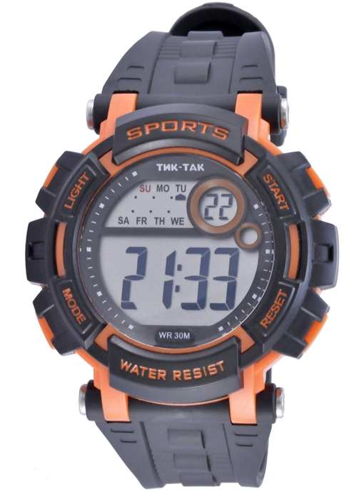 |  нажмите для увеличения | Электронные часы ТИК-ТАК Н473 Черно-оранжевые | Материал корпуса | Пластик | | Размеры корпуса | | | длина | 52 мм. | | ширина | 49 мм. | | толщина | 14 мм. | | Материал ремешка/браслета | PU | | Длина часов с ремешком | 255 мм. | | Механизм | Электронный с LCD дисплеем | | Особенности | 12/24 формат времени, дата, будильник, секундомер, подсветка | | Комплектация | Прозрачный пакет, паспорт, инструкция по эксплуатации и гарантийный талон |