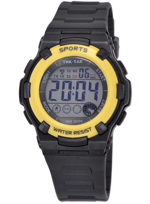 |  нажмите для увеличения | Электронные часы ТИК-ТАК Н476 черно-желтые | Материал корпуса | Пластик | | Размеры корпуса | | | длина | 44 мм. | | ширина | 38 мм. | | толщина | 13 мм. | | Материал ремешка/браслета | PU | | Длина часов с ремешком | 215 мм. | | Механизм | Электронный с LCD дисплеем | | Особенности | 12/24 формат времени, дата, будильник, секундомер, подсветка | | Комплектация | Прозрачный пакет, паспорт, инструкция по эксплуатации и гарантийный талон |