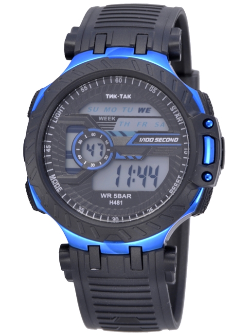 |  нажмите для увеличения | Электронные часы ТИК-ТАК Н481 WR50 черно-синие | Материал корпуса | Пластик | | Размеры корпуса | | | длина | 47 мм. | | ширина | 46 мм. | | толщина | 16 мм. | | Материал ремешка/браслета | PU | | Длина часов с ремешком | 240 мм. | | Механизм | Электронный с LCD дисплеем | | Особенности | 12/24 формат времени, дата, будильник, секундомер, подсветка. Водонепроницаемость 50м. | | Комплектация | Прозрачный пакет, паспорт, инструкция по эксплуатации и гарантийный талон |