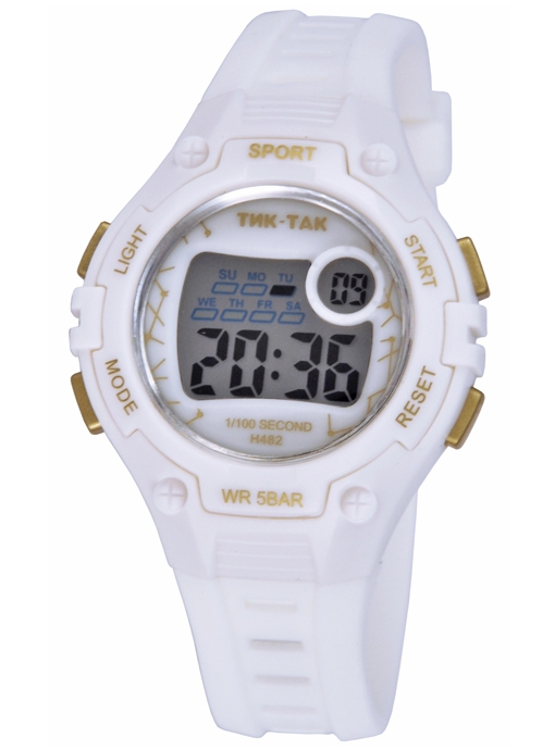 |  нажмите для увеличения | Электронные часы ТИК-ТАК Н482 WR50 белые | Материал корпуса | Пластик | | Размеры корпуса | | | длина | 44 мм. | | ширина | 35 мм. | | толщина | 14 мм. | | Материал ремешка/браслета | PU | | Длина часов с ремешком | 220 мм. | | Механизм | Электронный с LCD дисплеем | | Особенности | 12/24 формат времени, дата, будильник, секундомер, подсветка иллюминатор. Водонепроницаемость 50м. | | Комплектация | Прозрачный пакет, паспорт, инструкция по эксплуатации и гарантийный талон |