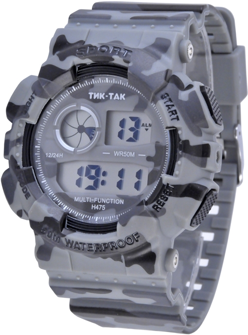 |  нажмите для увеличения | Электронные часы ТИК-ТАК Н475 WR50 серые | Материал корпуса | Пластик | | Размеры корпуса | | | длина | 55 мм. | | ширина | 50 мм. | | толщина | 15 мм. | | Материал ремешка/браслета | PU | | Длина часов с ремешком | 250 мм. | | Механизм | Электронный с LCD дисплеем | | Особенности | 12/24 формат времени, дата, будильник, секундомер, подсветка. Водонепроницаемость 50м. | | Комплектация | Прозрачный пакет, паспорт, инструкция по эксплуатации и гарантийный талон |